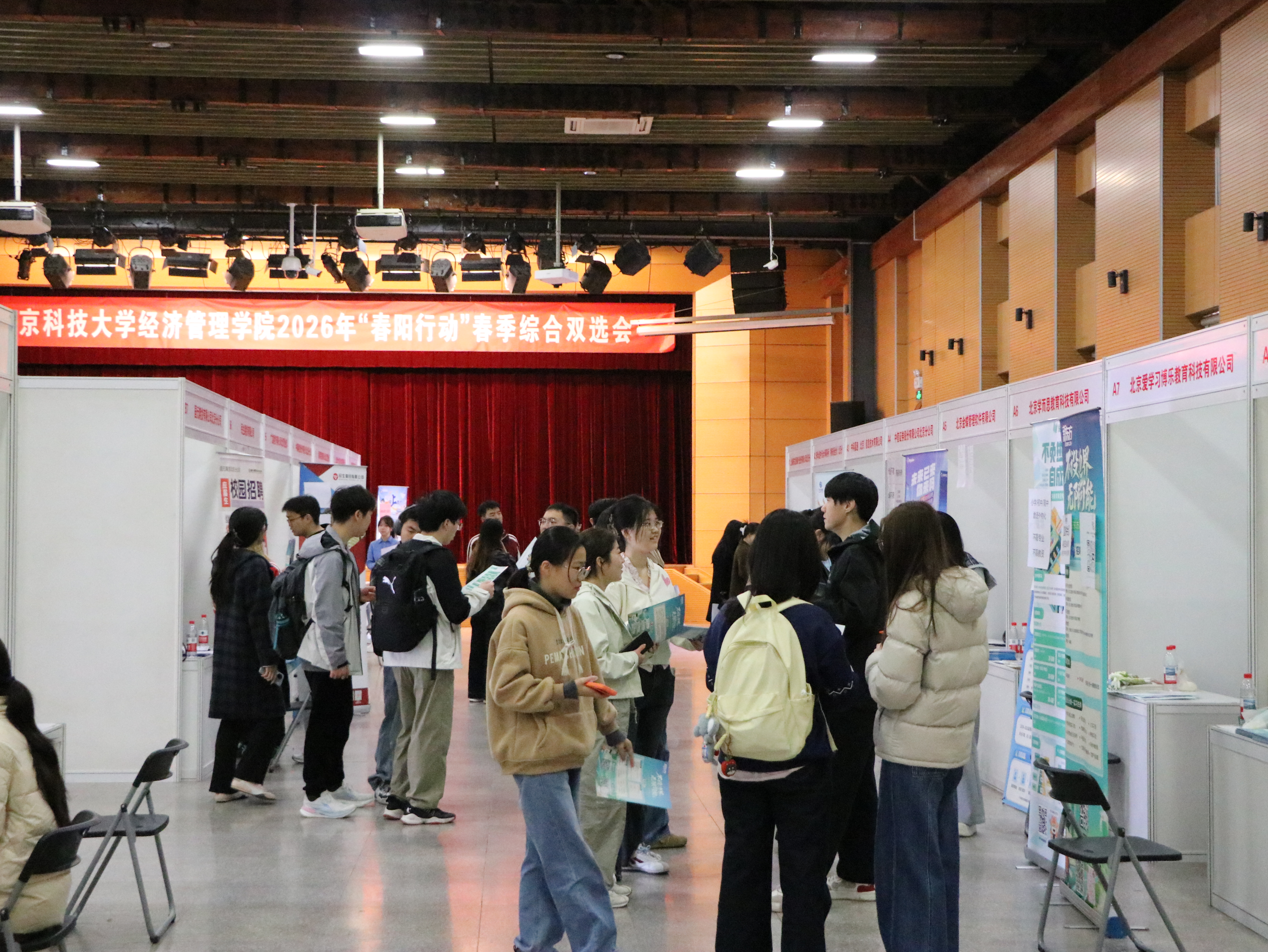 职聚经管,筑梦未来。为持续拓宽毕业生就业渠道,精准对接高质量就业岗位,经过精心筹备,3月27日上午,爱情岛论坛 在教职工礼堂成功举办2026年“春阳行动”春季综合双选会,为经管学子搭建高效对接、双向奔赴的就业桥梁。学院党委书记武森莅临现场,与各用人单位及学生亲切交流。